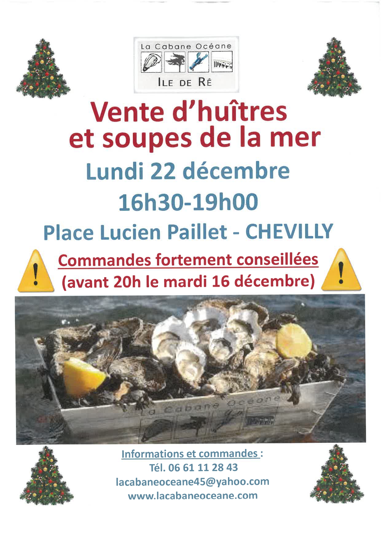 Vente d'huîtres et soupes de la mer le 22 décembre