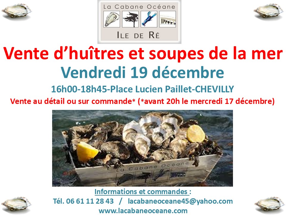 Vente d'huîtres et soupes de la mer le 19 décembre