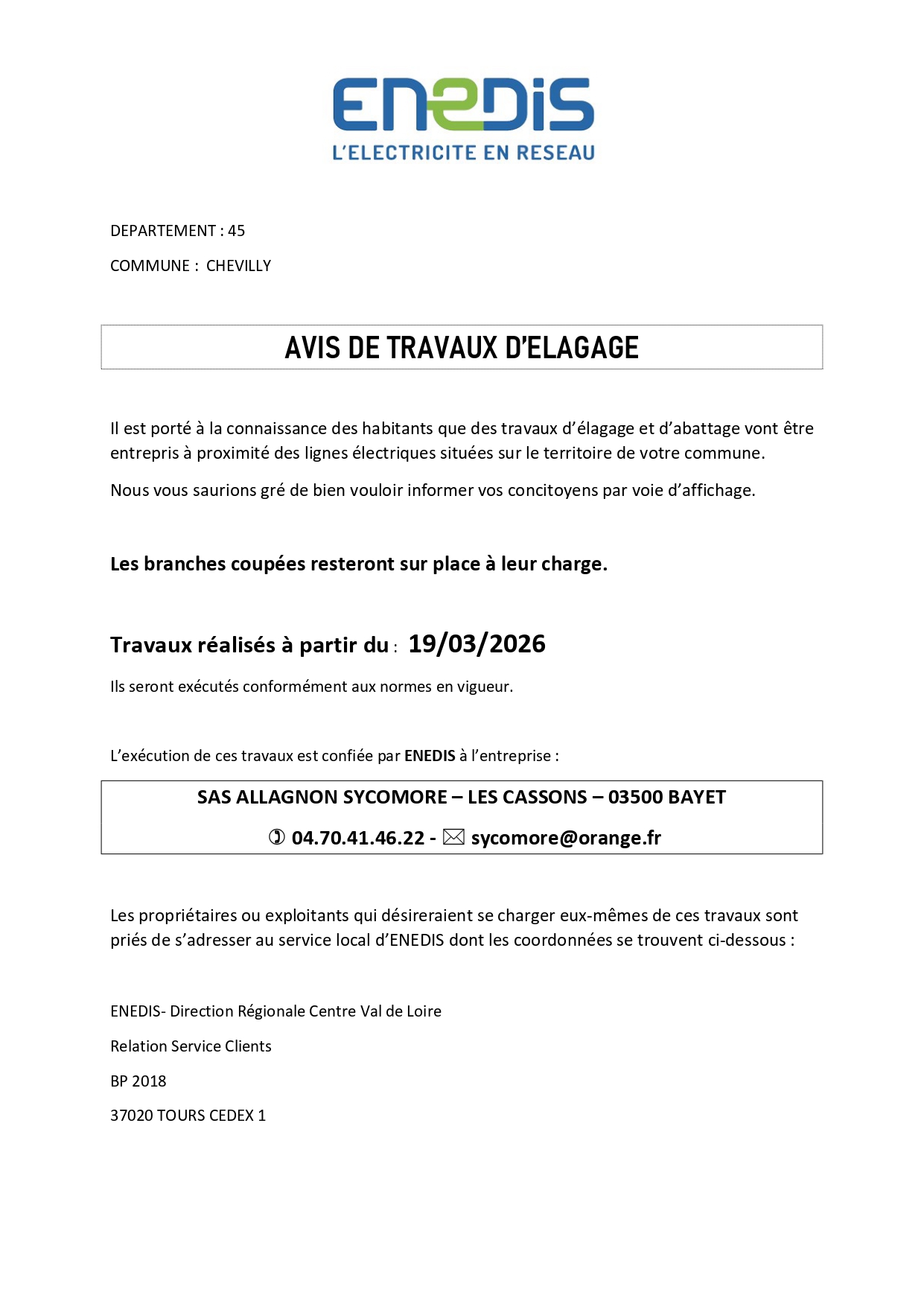 Avis de travaux d'élagage